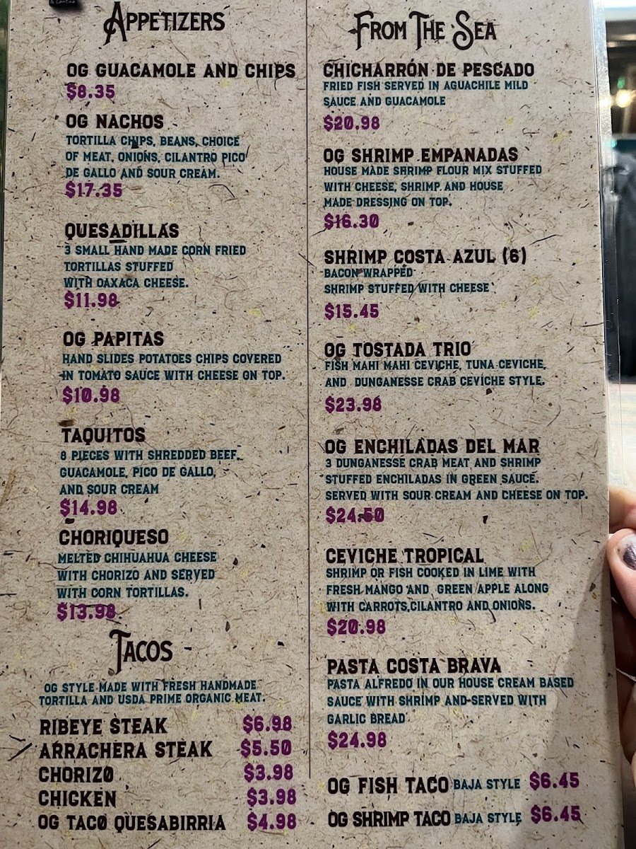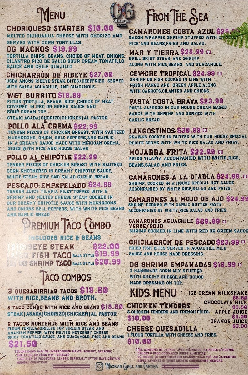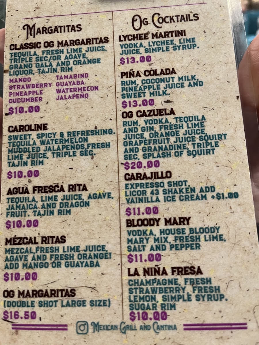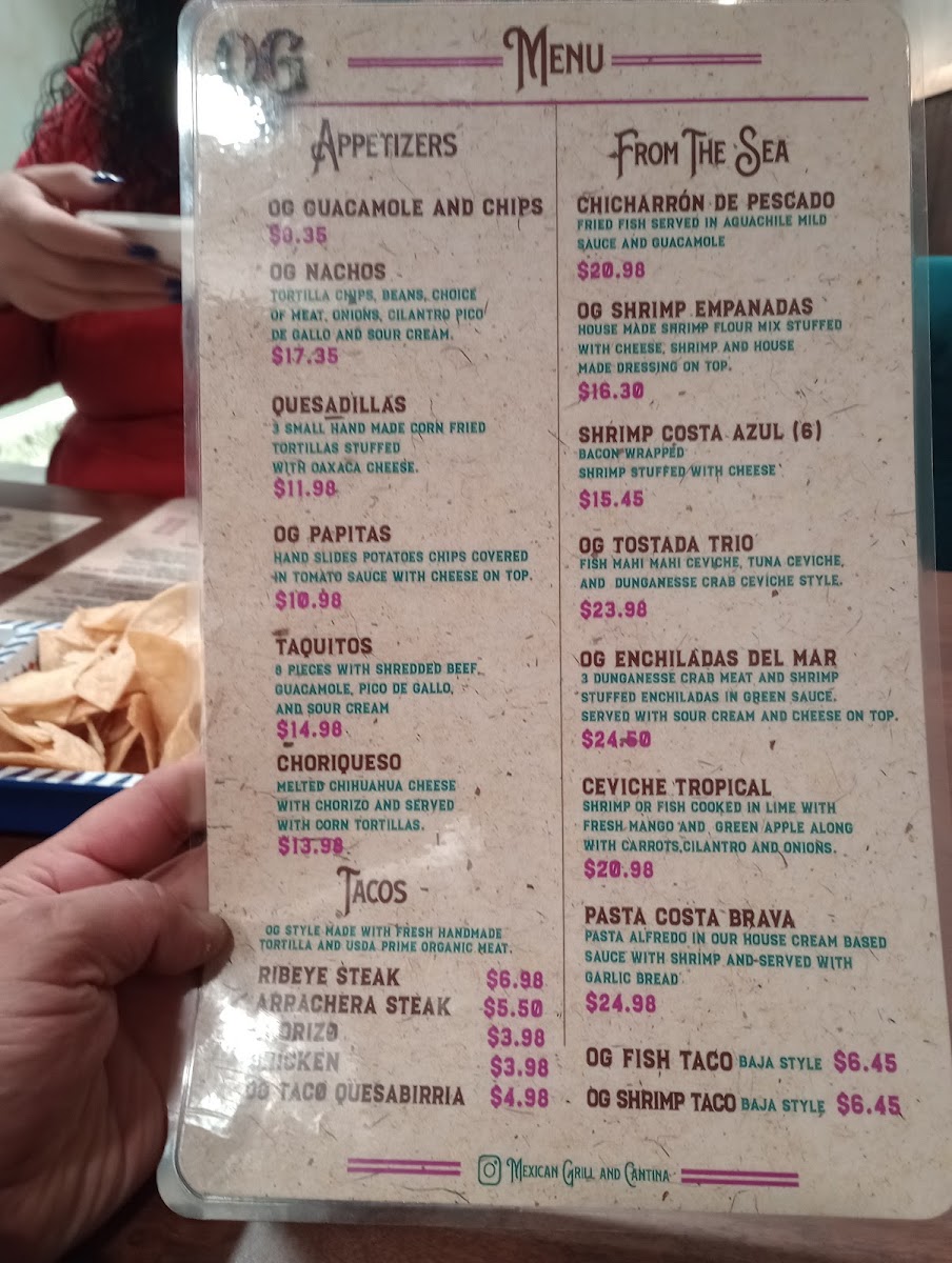 Looking for bold, flavorful Mexican dishes that will make your taste buds dance? The Og Mexican Grill & Cantina Menu at 18385 SW Tualatin Valley Hwy in Aloha has everything you need for an unforgettable dining experience. Whether you're craving sizzling fajitas, mouthwatering tacos, or the rich taste of enchiladas, this menu is packed with options to satisfy all your Mexican food cravings. Don’t forget to explore their unique take on classic favorites like burritos and quesadillas, all made with fresh, high-quality ingredients. Plus, with a variety of tasty sides and drinks, you’ll be able to customize your meal to fit your vibe. Perfect for a casual meal with friends or a family night out, Og Mexican Grill & Cantina is sure to become your go-to spot for authentic Mexican flavors.
